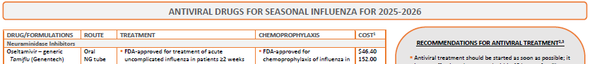 View the Comparison Table: Antiviral Drugs for Seasonal Influenza for 2025-2026